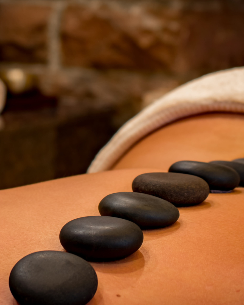 Warme Basaltsteine werden gezielt auf den Körper gelegt